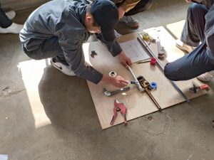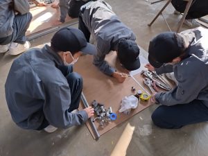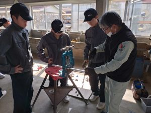 今回は、機械電気科1年生40名を対象に行い、座学・実技ともに指宿市管工事業協同組合の組合員の皆様にご協力をいただきました。
